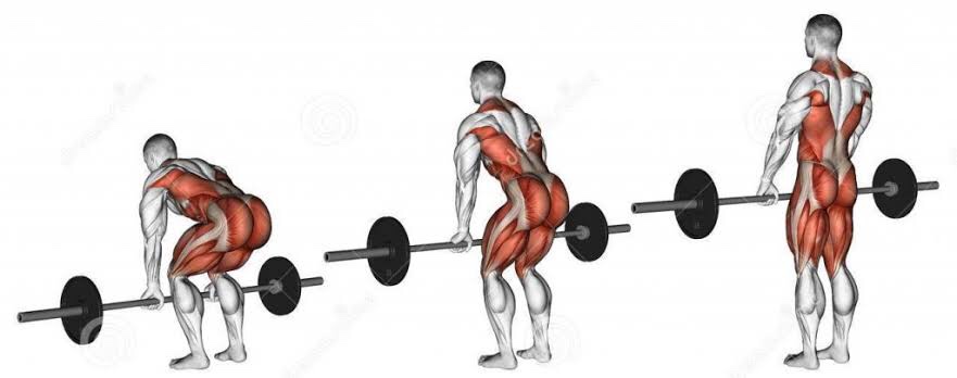 Los pesos muertos son un ejercicio compuesto que trabaja toda la espalda, y fue la clave para ganar masa y fuerza en el caso de hombres como Columbu o Jackson. Aquí añadiremos el entrenamiento de los trapecios y la zona lumbar al de la espalda, pero se pueden ejercitar con otros grupos musculares.