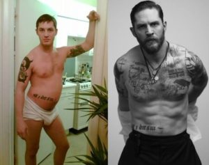 Una historia de superación Tom hardy dejo su adicción a las drogas y el alcohol para centrarse en su carrera como actor, en la actualidad es de los actores mas cotizados en hollywod. Una vida saludable y ejercicio contantes es lo que le hace lucir un cuerpo atlético y fibrado.