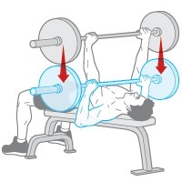 Túmbate en el banco boca arriba, coge la barra con ambas manos separadas y los codos flexionados. Empuja la barra hacia arriba, en frente de tu pecho mientras exhalas. Inhala mientras flexionas de nuevo los codos aproximando la barra al pecho.